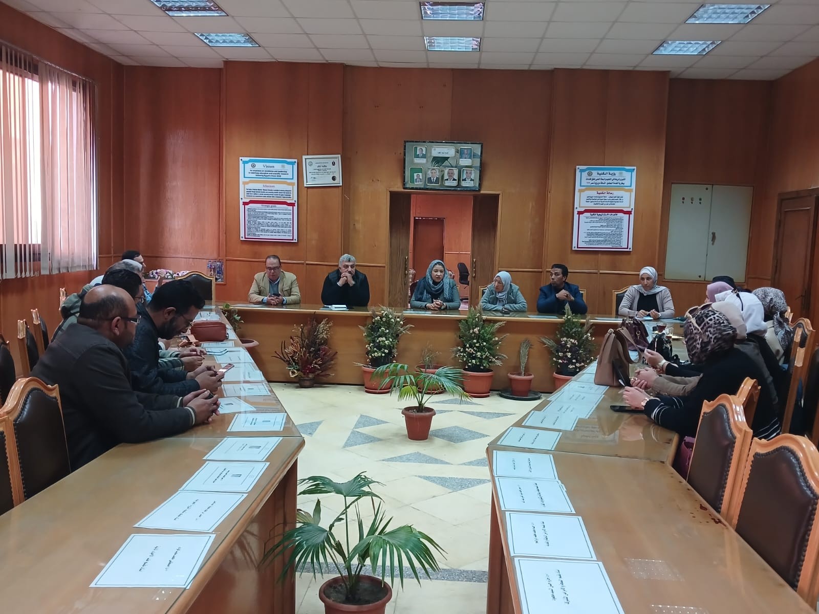 تحت رعاية أ.د/ مها عبده العشماوي عميد الكلية وتنظيم و تنسيق :- أ.د / محمد جبر السيد جبر - وكيل الكلية لشئون خدمة المجتمع و تنمية البيئة أ.د / أمل عبد الستار - رئيس لجنة متابعة الخريجين أ.م.د / الشيماء محمد فرج - مدير وحدة ضمان الجودة و تقييم الأداء بالكلية تم تنفيذ اللقاء المفتوح مع الخريجين و ذلك بحضور بعض من خريجي الكلية و ذلك في يوم الأثنين الموافق 19/1/2026 بقاعة مجلس الكلية.
